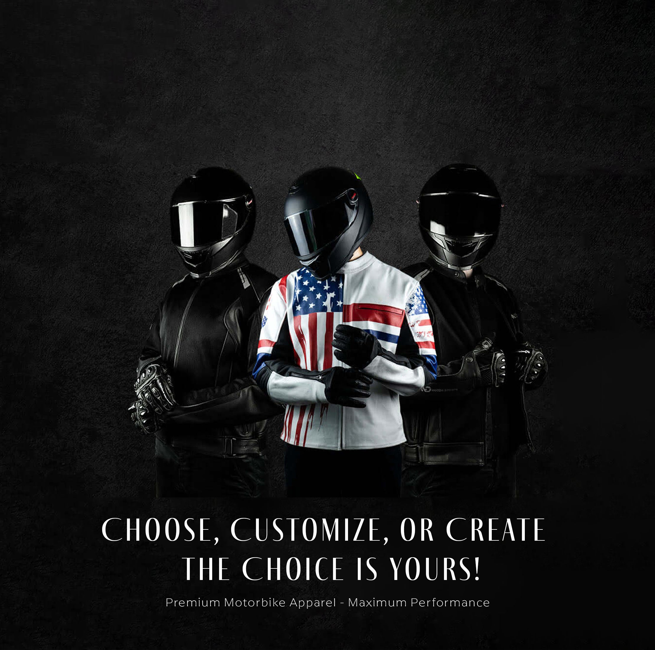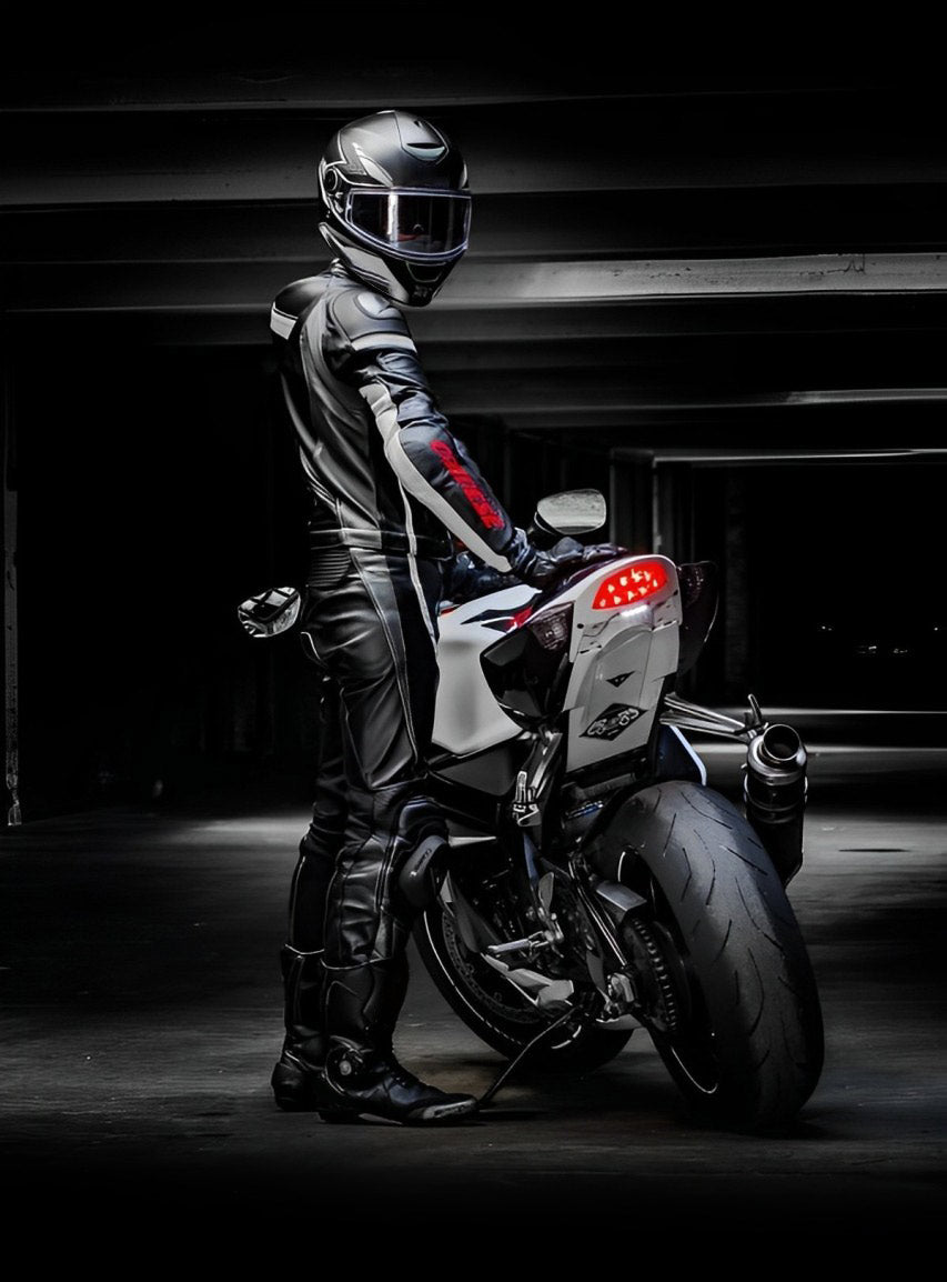 Explore custom motorbike leather apparels designed for ultimate safety, style & personalization. Add your name, logos or designs. Or create a fully unique custom made apparel tailored just for you!