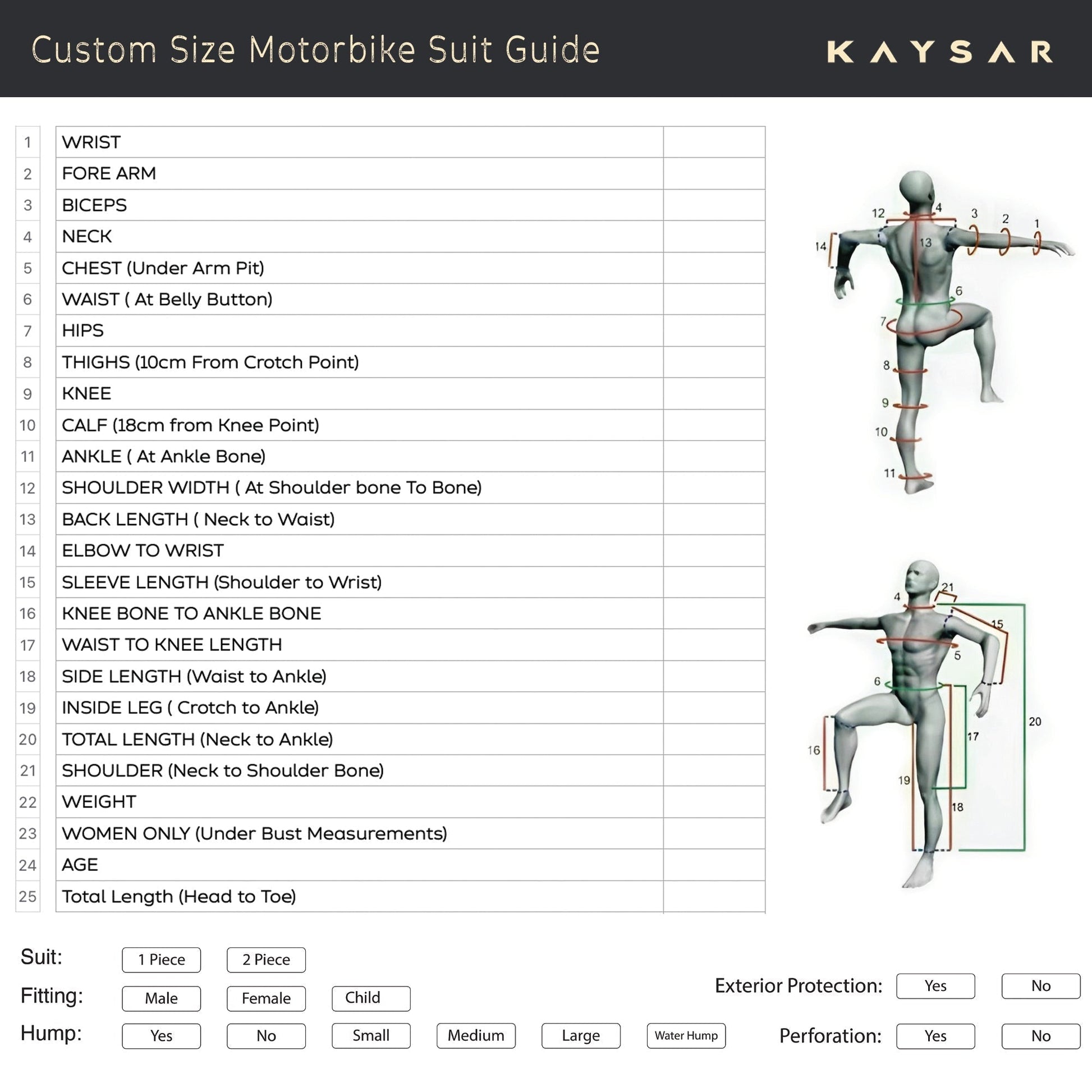 With KAYSAR, you have the freedom to customise your suit to match your exact preferences because every rider deserves gear that fits not only their body but their individuality.