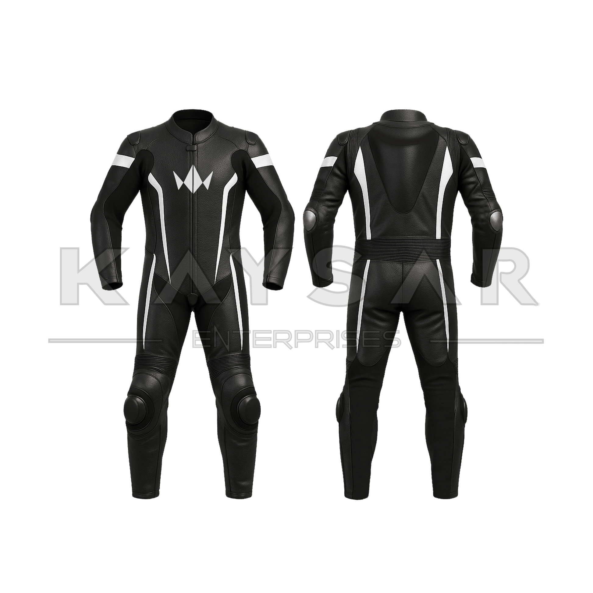 KE-258 Black with White Motorbike Leather Suit for Men